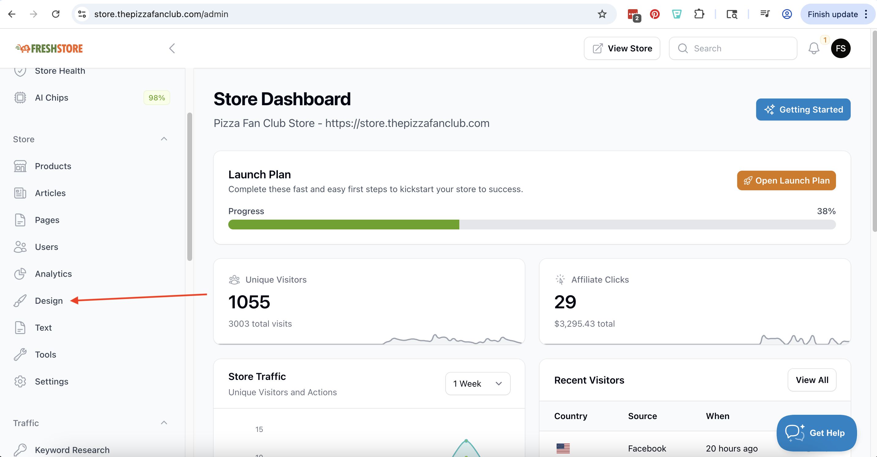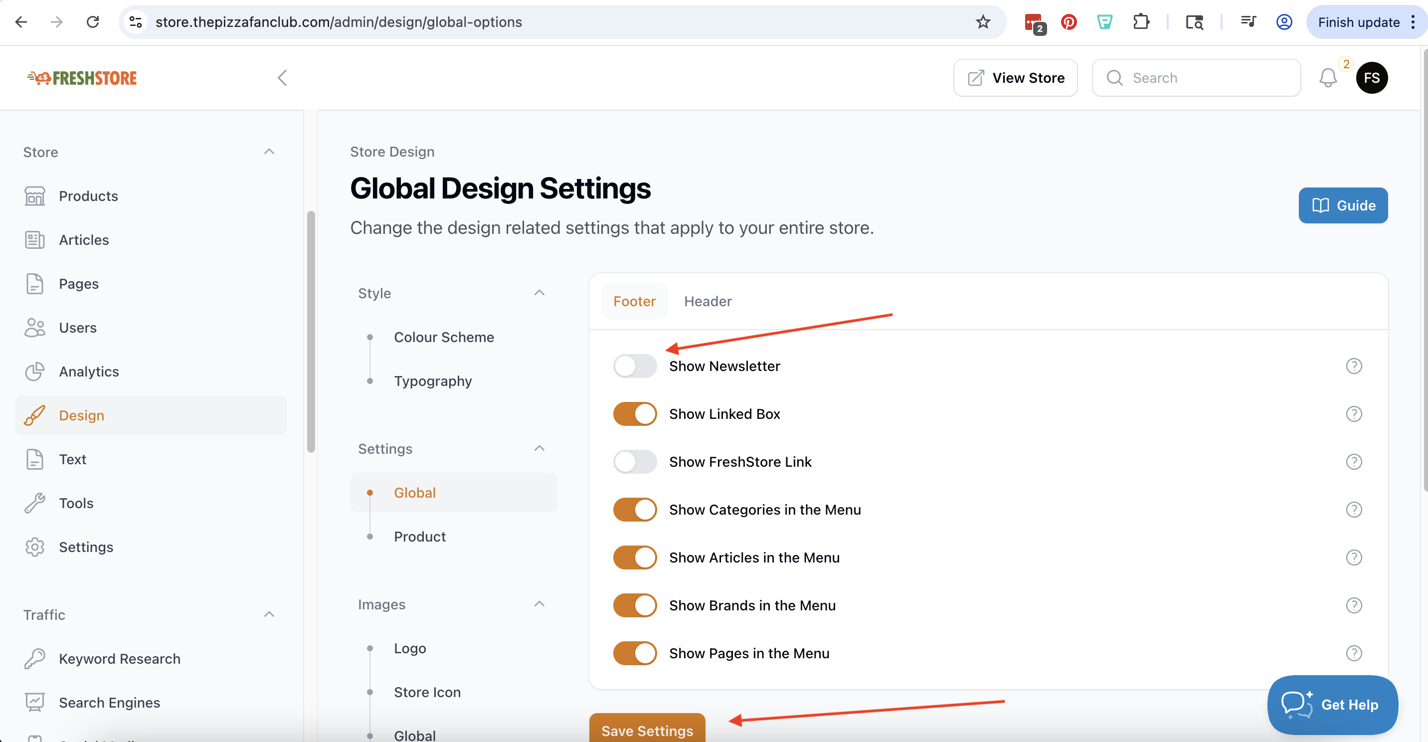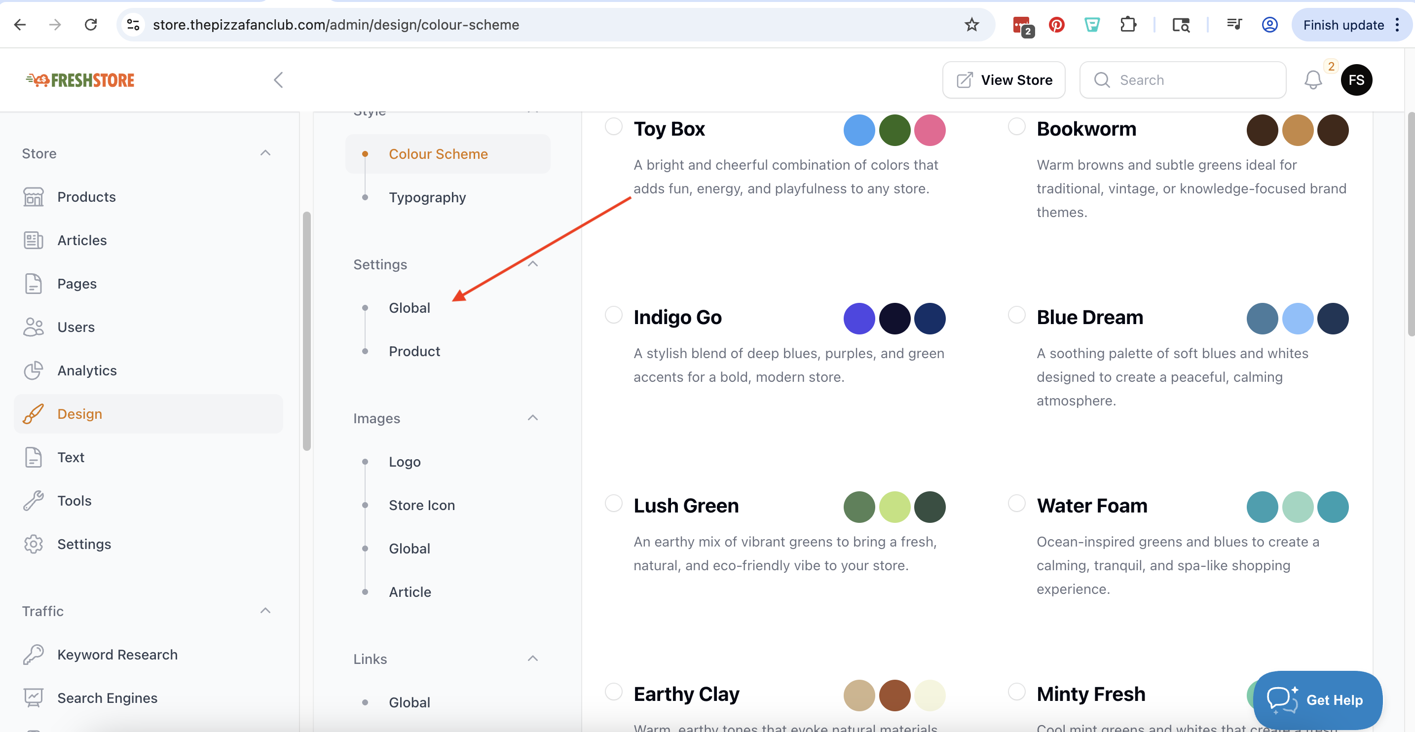 Go to your stores Dashboard and click the design link on the left sidebar.