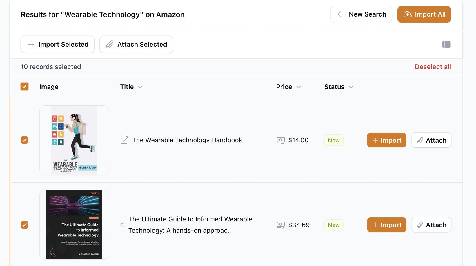 - If a product that you've checked looks okay, you can either click on Import to add it as a new product in your store or click on Attach to add it to an existing product.