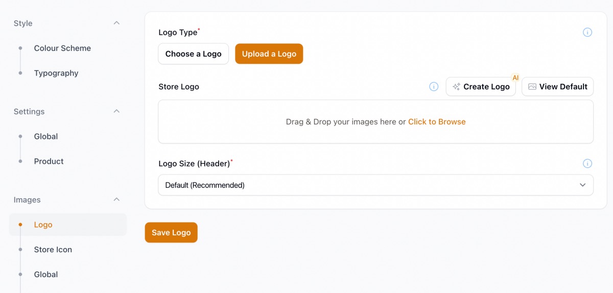 Creating a logo no longer requires you to know Photoshop or pay someone to do it. With Fresh Store, you can easily create a unique logo for your store using the AI Logo Designer. You can find this option in your "Store —> Design —> Images—> Logo" section.